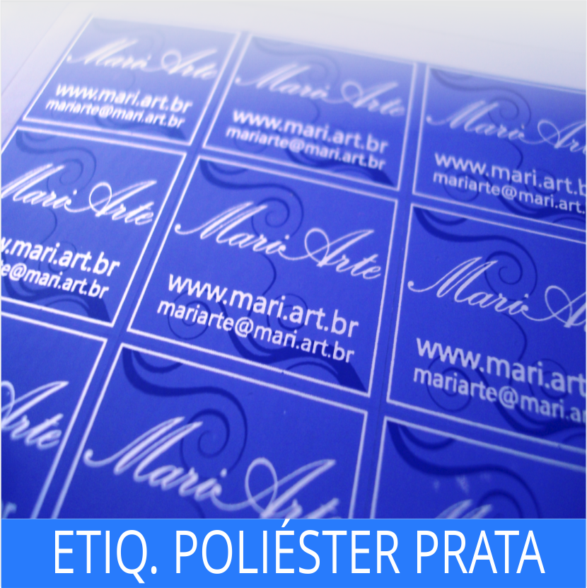 Etiquetas em Poliéster prata com efeito aço escovado brilhante